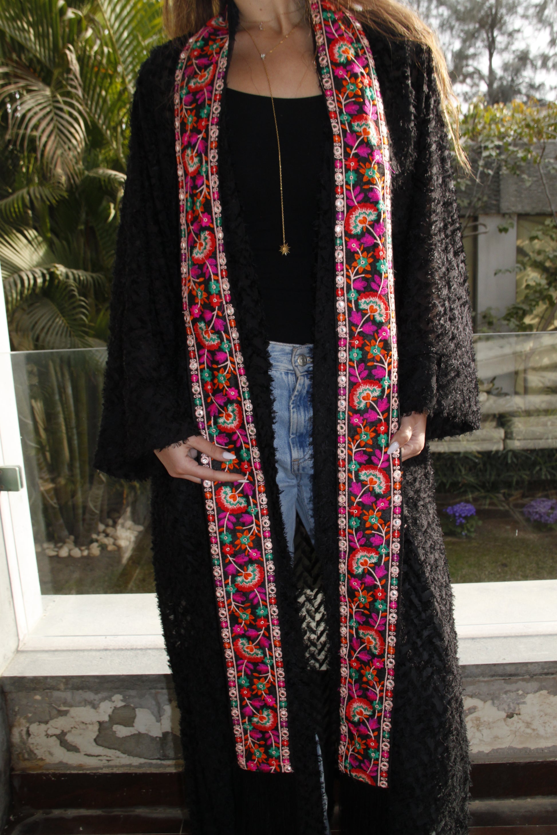 Our Floral Layali Kaftan is the same elegant and timeless Layali Kaftan you love, now with a refreshed touch. The belt is double sided so you can wear it in multiple ways.