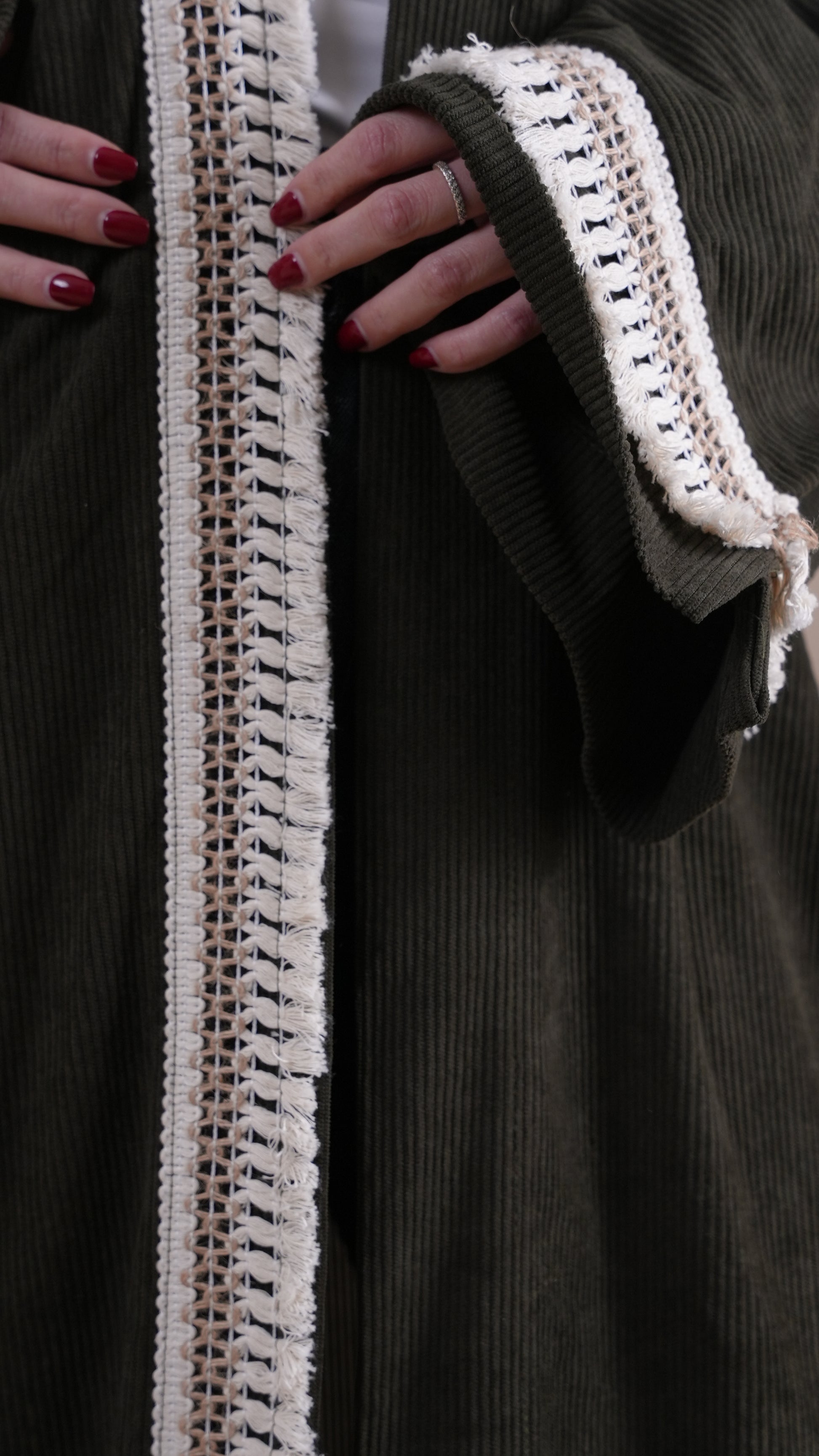 This velvet green kaftan is the perfect Ramadan additin in the winter—simple yet elegant design made for everyday use.